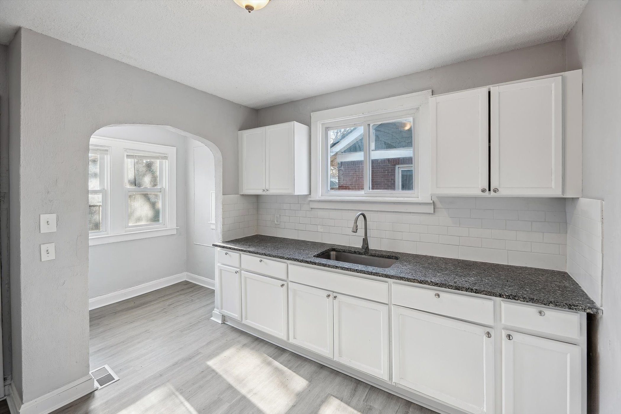 – Updated kitchen: new counter top, faucet, new subway tile backsplash